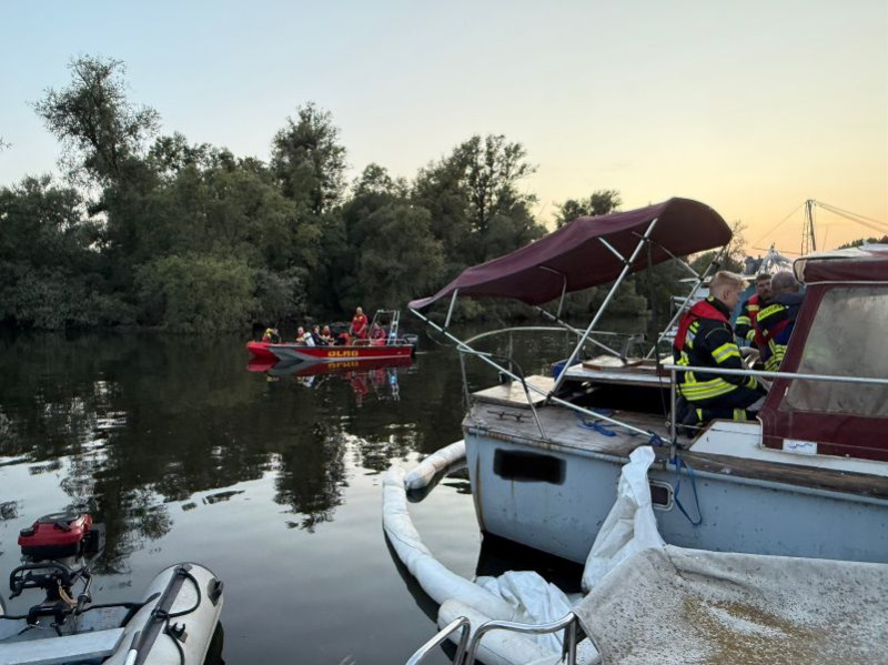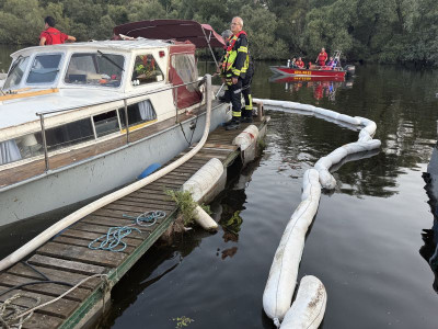 Nachforderung durch die Feuerwehr Lampertheim zur technischen Hilfeleistung mit Tauchern zur Sicherung des Bootes und möglichem Abdichten einer Leckage.