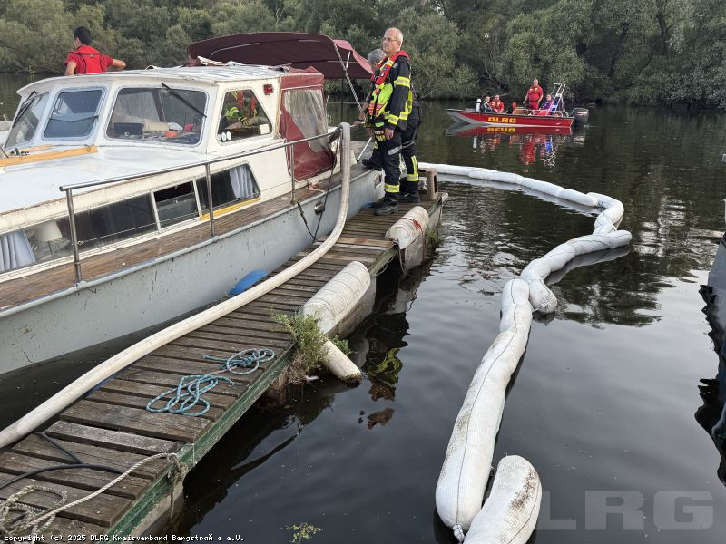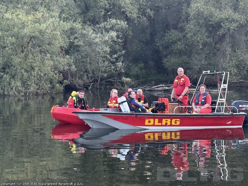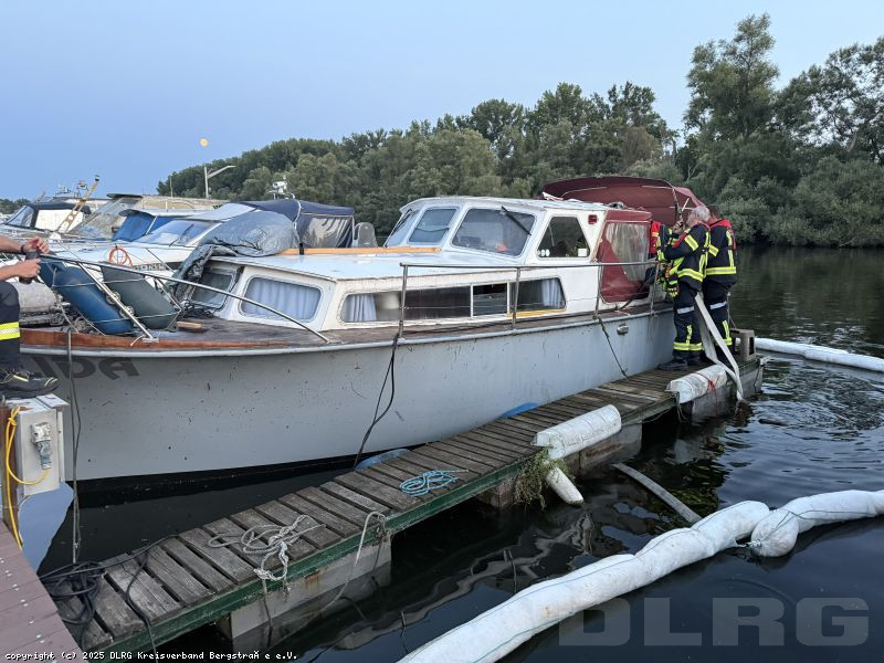 Die DLRG Heppenheim und Lampertheim wurden durch die Feuerwehr Lampertheim an den Altrhein nachgefordert. Vor Ort drohte ein Boot zu sinken. Die Feuerwehr begann unmittelbar mit dem Lenzen mittels Tauchpumpe. Es zeigte sich, dass keine Leckage vorlag, sondern sich durch Regenwasser ein so hoher Pegel im Boot aufgebaut hatte, dass dieses unter die Wasserlinie gedrückt wurde und über den Rand weiteres Wasser eindrang. Ein Taucheinsatz war daher nicht erforderlich. Die Einheiten der DLRG konnten zeitnah wieder abrücken.