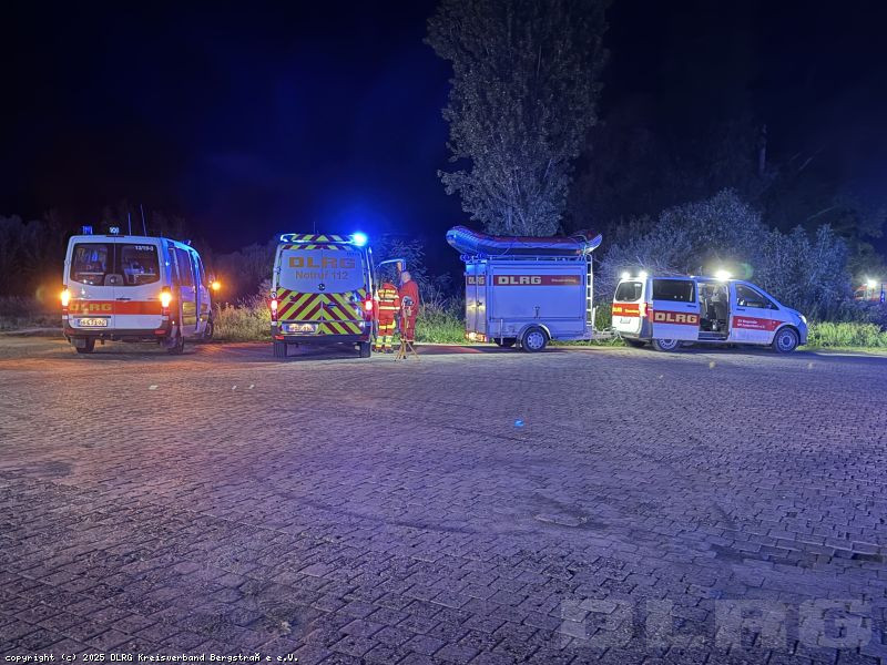 Bereits um 23:12 Uhr wurde das erste Boot durch die DLRG zu Wasser gelassen. Die Suche erfolgte mit zwei Booten der DLRG sowie einem Boot der Feuerwehr Lampertheim auf der hessischen Seite des Rheins. Parallel dazu suchte die Berufsfeuerwehr Worms die rheinland-pfälzische Seite mit einem weiteren Boot ab.